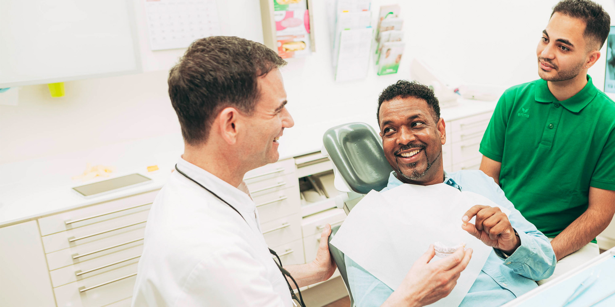 Die gesetzliche Krankenkasse zahlt in der Regel einen Festzuschuss zur Regelversorgung, also der Standardtherapie bei Zahnersatz. Wir stellen Ihnen alle Kosten vorab zusammen. Gemeinsam finden wir die beste Lösung.