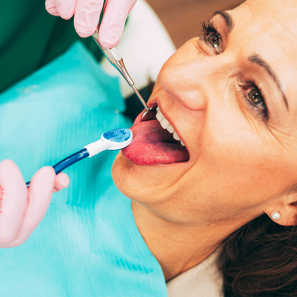 Ein schönes Gefühl: Sie verlassen die Praxis und streichen mit der Zunge über die Zähne. Alles herrlich glatt. So fühlt es sich an, wenn wir Ihre Zähne professionell gereinigt haben.